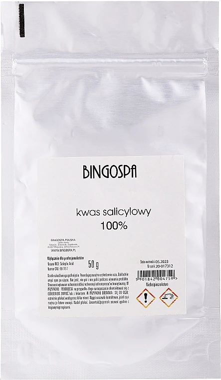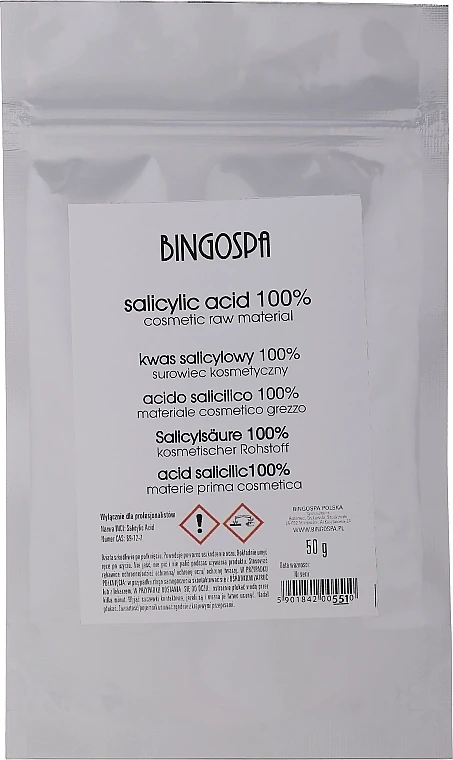 Die BingoSpa reine Salicylsäure ist ein wertvolles Beauty- und Gesundheitsprodukt. Es handelt sich dabei um einen chemischen Stoff, der in Medikamenten als schmerzstillende, entzündungshemmende und fiebersenkende Substanz zum Einsatz kommt. Auch gegen Hautkrankheiten wie Schuppenflechte, Akne oder Warzen wirkt der Stoff. Zudem ist er entzündungshemmend und desinfizierend. In der Haarpflege wird er erfolgreich gegen Schuppen angewendet.