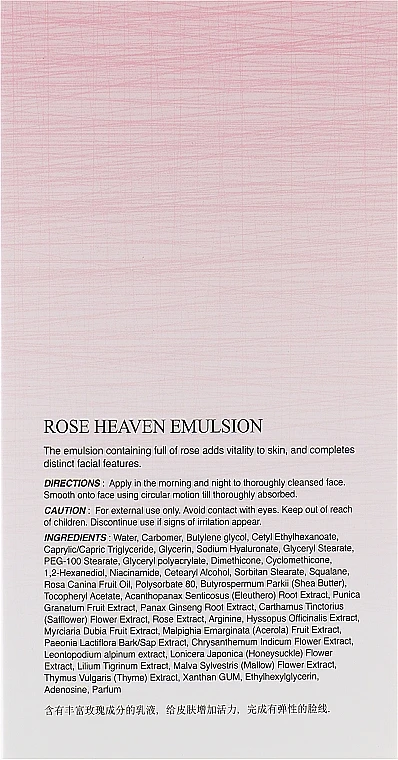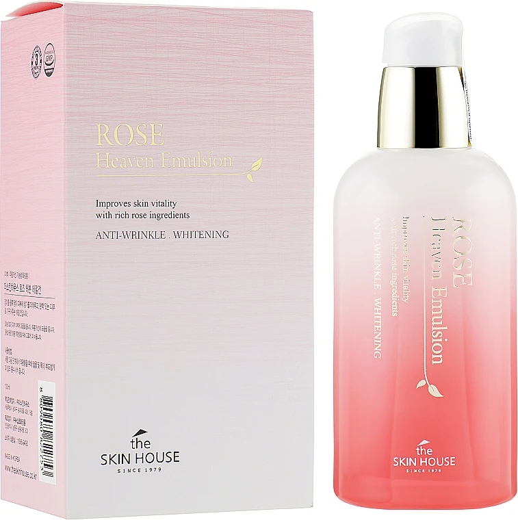 Greifen Sie zur aufhellenden, nährenden und straffenden Anti-Falten Gesichtsemulsion mit Rosenextrakt von The Skin House, um Ihrer Haut wieder einmal etwas Gutes zu tun. Die Emulsion ist besonders zart und lässt sich sehr gut auftragen. Sie zieht rasch ein und versorgt die Haut mit langanhaltender Feuchtigkeit. Sie hinterlässt ein angenehmes Gefühl sowie einen zarten Duft nach Rose. Der Hautton wird ausgeglichen und Flecken werden deutlich aufgehellt. Zudem wird das Hautbild gestrafft und die Haut sieht jugendlicher und frischer aus. Die Emulsion wirkt der Hautalterung entgegen und kann täglich verwendet werden.