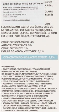 Diese Creme von Académie ist weitaus leistungsfähiger als die Sonnenschutzcremes anderer Hersteller. Sie schützt Ihre Haut mit LSF 50 zuverlässig vor UVA- und UVB-Strahlung und verhindert gleichzeitig, dass sie durch Umweltverschmutzung geschädigt wird. Die leichte Textur ist nicht fettend, hinterlässt keinen weißen Film und ist auf der Haut unsichtbar. Zusätzlich bewahrt sie Ihre Haut vor Hyperpigmentierung und hellt dunkle Flecken sowie Augenringe auf. Für diesen aufhellenden Effekt ist der Extrakt aus Süßholzwurzel verantwortlich, der nicht nur entzündungshemmend und stark antioxidativ wirkt, sondern zugleich Altersflecken verblassen lässt. Weitere Extrakte aus Melone und Echtem Eibisch wirken feuchtigkeitsspendend, beruhigend und heilend.