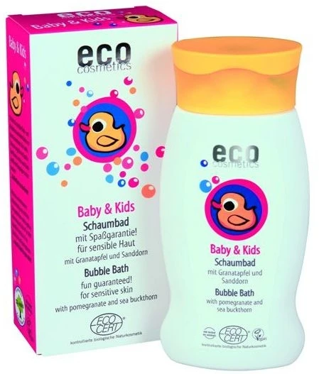 Eco Cosmetics Baby&Kids Bubble Bath ist ein leichter Baby Badeschaum mit Granatapfel-Extrakt und Sanddorn für die Pflege zarter Babyhaut. Die sanfte Pflegeformel schützt die empfindliche Babyhaut beim Baden vor dem Austrocknen. Purer Sanddornblattextrakt aus biologischem Anbau beruhigt empfindliche Haut und unterstützt die noch nicht voll entwickelten Hautfunktionen.