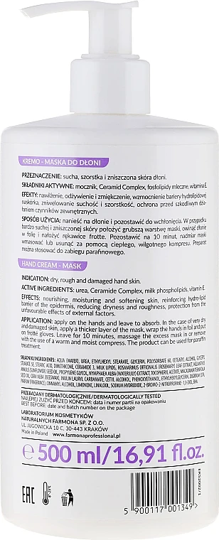 Die Farmona Creme-Maske für Hände pflegt mit wunderbar duftenden, natürlichen Inhaltsstoffen. Eine reichhaltige Formel regeneriert rissige Haut und lindert Rötungen, die sich durch häufigen Kontakt mit Reinigungs- und Desinfektionsmitteln bemerkbar machen. Ceramide und Milch-Lipide reparieren beschädigte Bereiche und stärken die Widerstandskraft, während Rosmarin-Extrakt, Bienenwachs und Inulin entzündungshemmend und beruhigend wirken. Vitamin E strafft die Haut und schützt vor freien Radikalen, während Urea die Haut erweicht und Feuchtigkeit bindet. Wasserlilien-Extrakt, Sonnenblumen- und Macadamiaöl geben Vitamine, Fettsäuren und nützliche Mikroelemente frei, die langzeitige Geschmeidigkeit und Komfort hinterlassen.