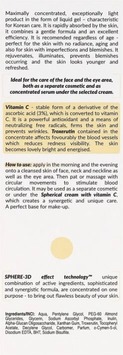 Die energetisierende Kraft von konzentriertem Vitamin C kommt in dem Floslek Serum Ihrer Haut zugute: Seine leichte, nicht fettende Textur zieht schnell ein und entfaltet seine verjüngende Wirkung. Das starke Antioxidans gleicht den Hautton aus, hellt Verfärbungen auf, stärkt die Kapillarwände und reduziert Rötungen. Seine straffenden Eigenschaften glätten Falten, heben ermüdete Bereiche und beseitigen kleine Unregelmäßigkeiten in Form von Akne und Entzündungen. Mandelglyceride sowie Oligosaccharide spenden intensive Feuchtigkeit und schließen sie ein, sodass die Haut seidenweich, tonisiert und durch verfeinertes Mikroprofil erfrischt und erholt wirkt.