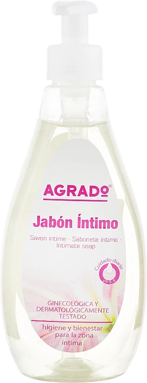 Intimhygiene ist sehr wichtig für die allgemeine Gesundheit einer Frau. Die flüssige Intimseife der spanischen Marke Agrado ist ein kosmetisches Produkt, das für eine sanfte Reinigung und Pflege des empfindlichen Bereichs sorgt. Seine aktive Formel zeichnet sich durch einen optimalen pH-Wert aus, der das natürliche Säure-Basen-Gleichgewicht der Mikroflora nicht stört.