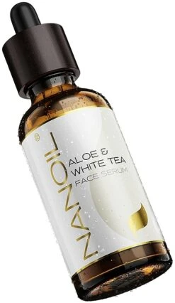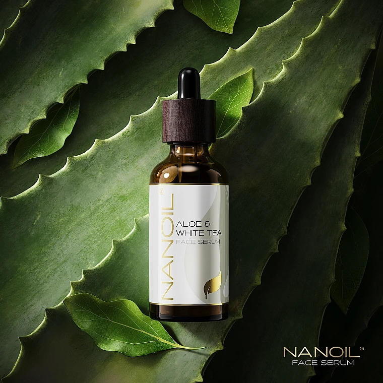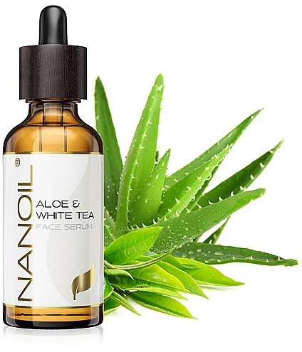 Nanoil Aloe & White Tea Face Serum ist ein linderndes Gesichtsserum mit revitalisierenden Eigenschaften. Durch Aloe-Vera-Extrakt wird besonders zu Reizungen neigende, empfindliche Haut beruhigt und mit viel Feuchtigkeit versorgt. Weißer Tee wirkt stark antioxidativ, indem er freie Radikale neutralisiert, was auch zu mehr Elastizität der Haut beiträgt. Das Ergebnis ist ein erfrischtes und geglättetes Hautbild.