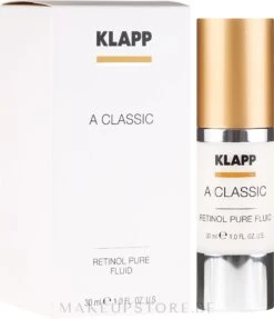Das Klapp A Classic Retinol Pure Serum bietet intensive und verträgliche Pflege insbesondere für reife und anspruchsvolle Haut. Das Serum aktiviert mit hochdosiertem und reinem Vitamin A die natürlichen Regenerationsmechanismen der Haut und regt darüber hinaus die Bildung von Kollagen und die Zellaktivität an. Die Haut wirkt dadurch jugendlicher und straffer, feine Linien und Fältchen werden vermindert. Acetat und Thalaspheren tragen zur Verzögerung der Alterungsprozesse in der Haut bei.