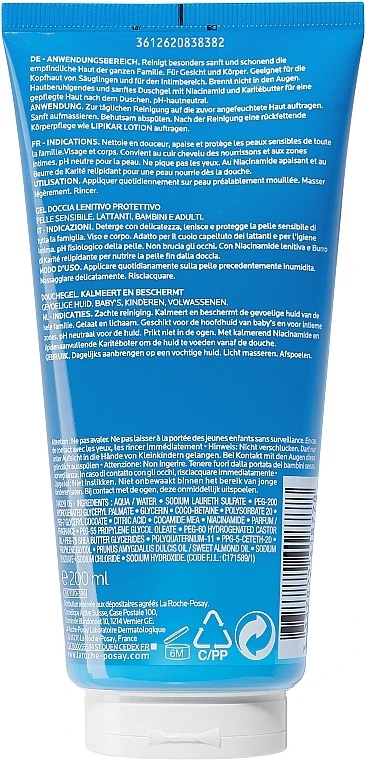 Das sanfte beruhigende Duschgel für Säuglinge, Kinder und Erwachsene von La Roche-Posay reinigt die Haut sanft und schonend. Das Gel spendet bereits während der Reinigung viel Feuchtigkeit und verleiht der Haut ein zartes Gefühl und einen angenehmen Duft. Das Duschgel ist für den ganzen Körper geeignet und wurde speziell für die empfindliche Haut von Säuglingen und Kindern entwickelt. Auch Erwachsene können zu dem sanften Duschgel greifen. Nutzen Sie das Gel täglich, um den Körper gründlich zu reinigen und pflegen Sie die Haut anschließend mit einem passenden Produkt nach.