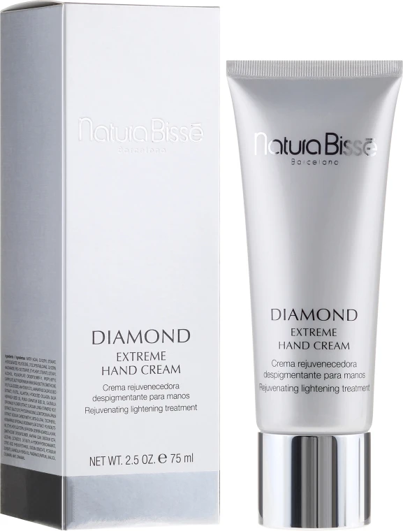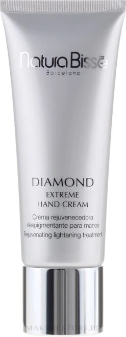 Wenn die Hände nicht genügend Aufmerksamkeit erhalten, wird die Haut schnell spröde und rau. Diamond Extreme Hand Cream von Natura Bisse verwöhnt normale bis beanspruchte Haut an den Händen mit einer luxuriösen Formulierung. Die leichte Creme zieht schnell ein und wirkt nährend und beruhigend. Die Zeichen der Zeit machen sich auch an den Händen bemerkbar. Die Handcreme Diamond Extreme wirkt mit sorgfältig ausgewählten Inhaltsstoffen wie Punicinsäure und Kurkuma-Extrakt der Hautalterung entgegen. Niacinamid mindert das Erscheinungsbild von dunklen Pigmentflecken. Der langanhaltende hydratisierende Effekt sorgt für eine weiche und geschmeidige Haut. Eine innovative Wirkstoffkombination stärkt Regenerationsprozesse und die natürliche Feuchtigkeitsbarriere. Hydrolysiertes Kollagen sorgt für straffe, elastische Haut.