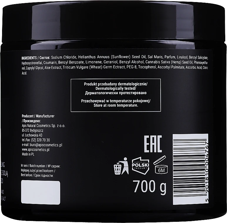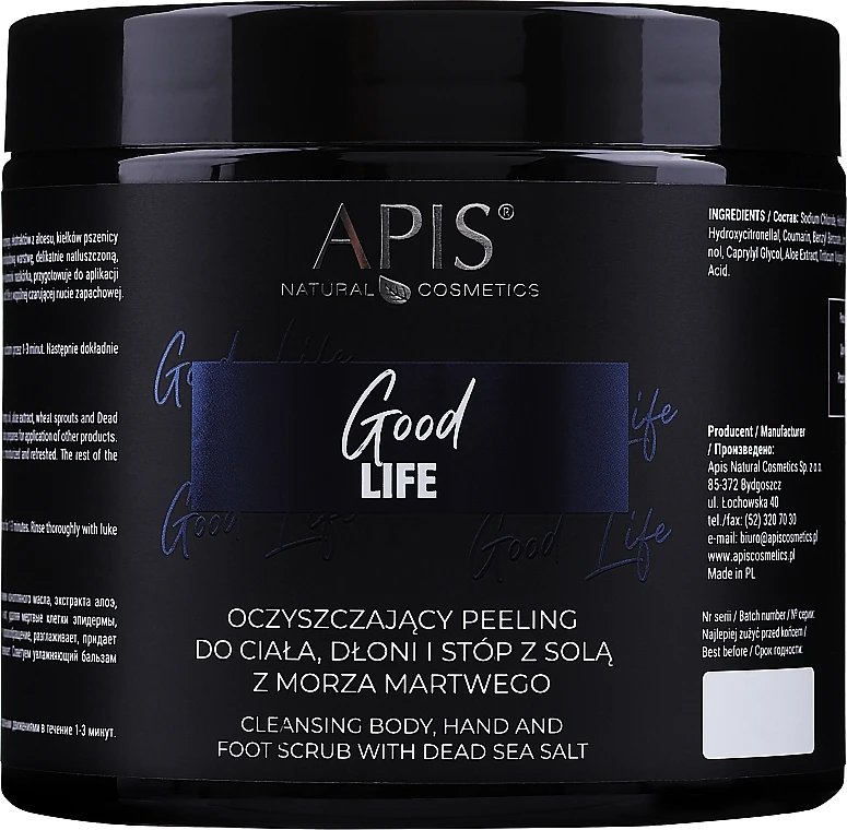 Das Reinigungspeeling für Körper, Hände und Füße mit Salz aus dem Toten Meer von Apis Professional ist für jeden Hauttyp geeignet. Das hochwertige Produkt entfernt abgestorbene Hautzellen und sorgt dafür, dass die Haut wieder neue Energie und einen gesunden Glanz erhält. Die Haut kann sich außerdem wieder besser regenerieren und nachfolgende Pflegeprodukte besser aufnehmen. Nutzen Sie das Peeling für den ganzen Körper, die Hände sowie die Füße und lassen Sie sich von dem ebenmäßigen Hautbild überzeugen. Freuen Sie sich zudem auf einen besonders sanften Duft.