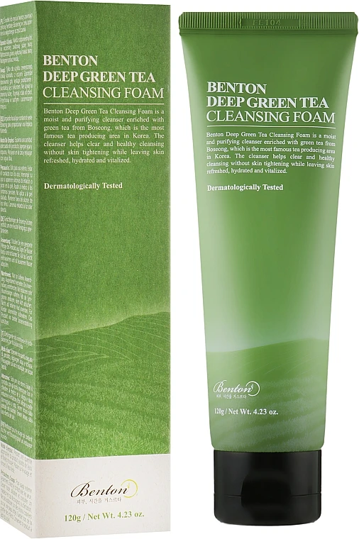 Erleben Sie eine grünere Reinigungsroutine mit dem Benton Deep Green Tea Cleansing Foam. Dieses Gesichtsreinigungsschaum mit Grüntee-Extrakt ist ein wahres Kraftpaket für Ihre Haut. Mit seinen glättenden, pflegenden, reinigenden und tonisierenden Eigenschaften ist es der perfekte Begleiter für alle Frauen ab 18 Jahren. Der Schaum kann zu jeder Tageszeit verwendet werden und ist somit ein universelles Produkt, das sich leicht in Ihre tägliche Hautpflege-Routine integrieren lässt. Egal, ob Sie morgens oder abends eine gründliche Reinigung wünschen, dieser Schaum bietet Ihnen ein erfrischendes und beruhigendes Erlebnis. Als natürlicher Reinigungsschaum ist das Produkt besonders schonend zur Haut. Geeignet für alle Hauttypen, verwöhnt er Ihre Haut mit den wohltuenden Eigenschaften von Grüntee-Extrakt. Dieser Extrakt verfügt über antioxidative Wirkung und die Fähigkeit, die Haut zu beruhigen und zu schützen.