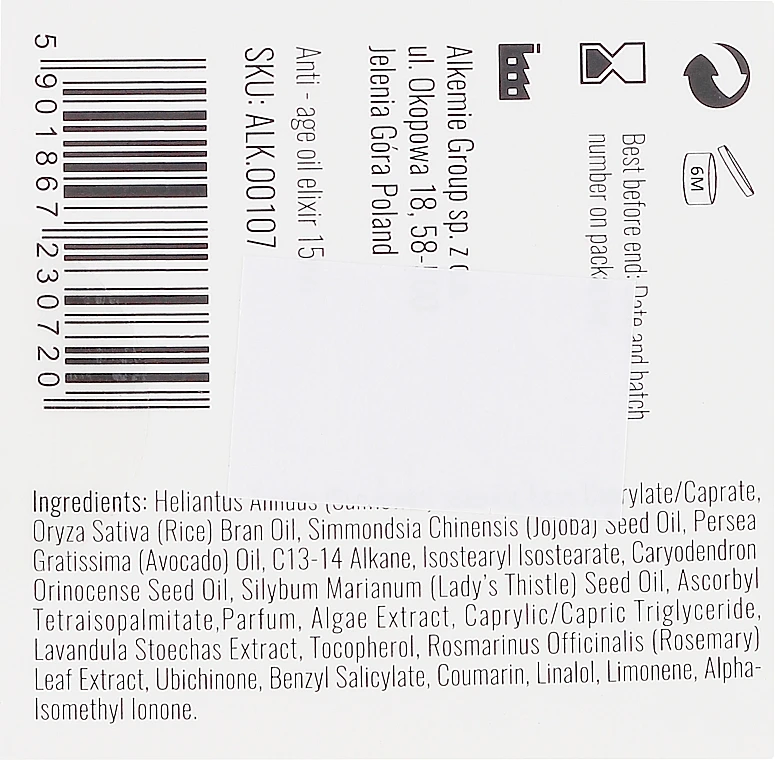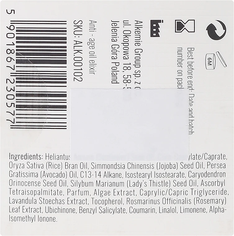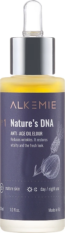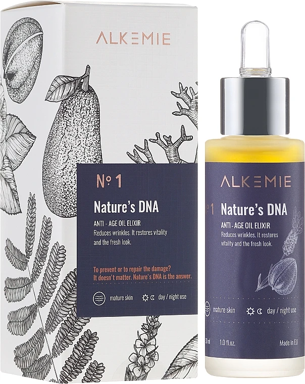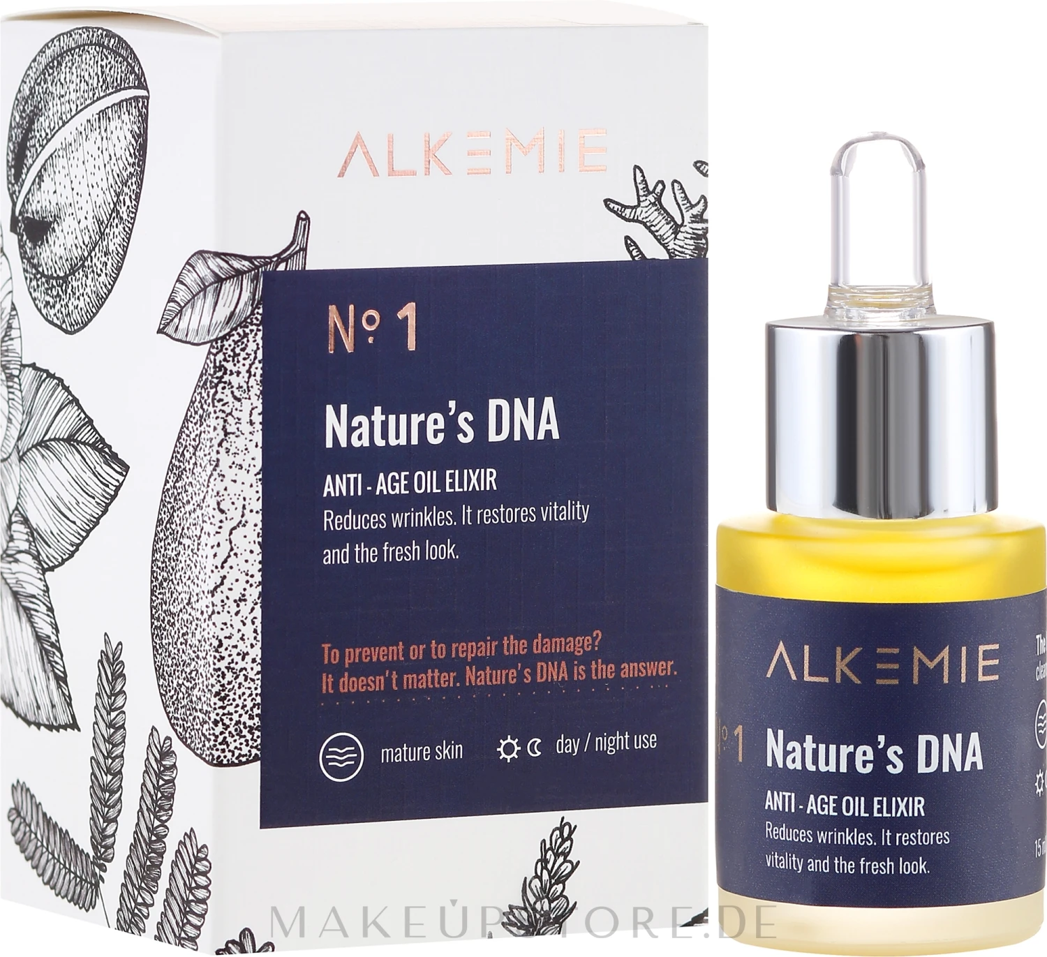Das Alkemie Nature’s DNA Oil Elixir ist ein verjüngendes Pflegeelixier für alle Hauttypen, das Ihrer Haut sofort ein verjüngtes und vitaleres Aussehen schenkt. Das hochwertige Elixier beinhaltet unter anderem das Coenzym Q10, das die Alterungsprozesse in der Haut verzögern kann. Darüber hinaus pflegt es Ihre Haut mit Extrakten aus der Mariendistel und Algen sowohl mit Avocado- und Lavendelöl sowie Kahai- und Reisöl. Die Haut wird wunderbar glatt, geschmeidig und weich.