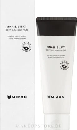 Snail Silky Deep Cleansing Foam von Mizon reinigt die Haut tiefenwirksam. Die schaumige Textur fühlt sich angenehm an. Eine effektive tiefenreinigende Wirkung wird erzielt, ohne die Haut auszutrocknen. Der Deep Cleansing Foam entfernt Make-up, überschüssigen Talg und Schmutz. Die reinigende und pflegende Formel enthält eine Kombination aus Schneckensekret und Natronpartikeln. Natron reinigt die Poren effektiv, während das Schneckenextrakt die Haut hydratisiert und die Zellerneuerung stimuliert. Der feuchtigkeitsspendende Effekt wird durch Hyaluronsäure unterstützt. Die Formel enthält beruhigendes Jojobaöl und hydratisierendes Bienenwachs. Das Ergebnis ist eine klare, feinere und porentief gereinigte Haut. Das milde Produkt wurde dermatologisch getestet und kann täglich angewendet werden.
