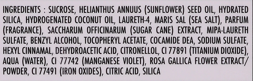 Das Peeling regt die Durchblutung und den Stoffwechsel an und wirkt regenerierend auf die Haut. Wertvolle Substanzen wie Kokos- oder Sonnenblumenöl versorgen sie dabei mit Feuchtigkeit und Pflege. Zudem verwöhnt das Produkt mit dem blumigen, fruchtigen Duft von Litschi und Rosen.
