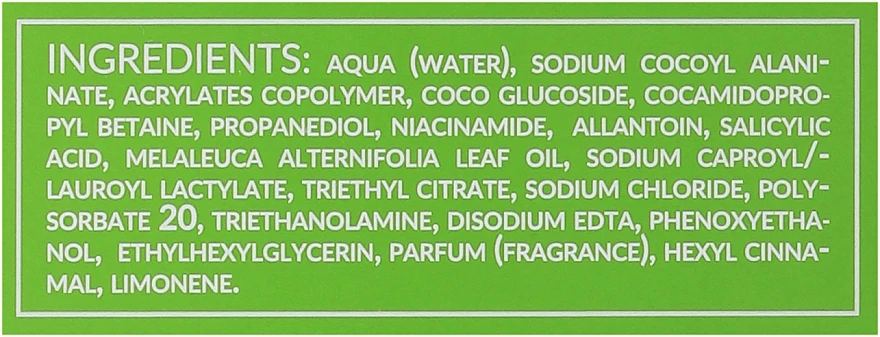 Das zarte Gesichtsreinigungsgel dieser Linie enthält keine aggressiven Inhaltsstoffe, daher reizt oder trocknet es die Haut nicht. Es reinigt das Gesicht porentief und hilft darüber hinaus im Kampf gegen übermäßige Talgproduktion und erste Fältchen. Seine Wirkung basiert auf Aktivstoffen wie Antibakterieller Komplex, Teebaumöl, Niacinamid, Allantoin und Propandiol, die die Haut intensiv pflegen, ohne sie zu reizen. Auf diese Weise gibt Ihnen das Reinigungsgel nach und nach das Gefühl von Komfort und Erleichterung zurück.